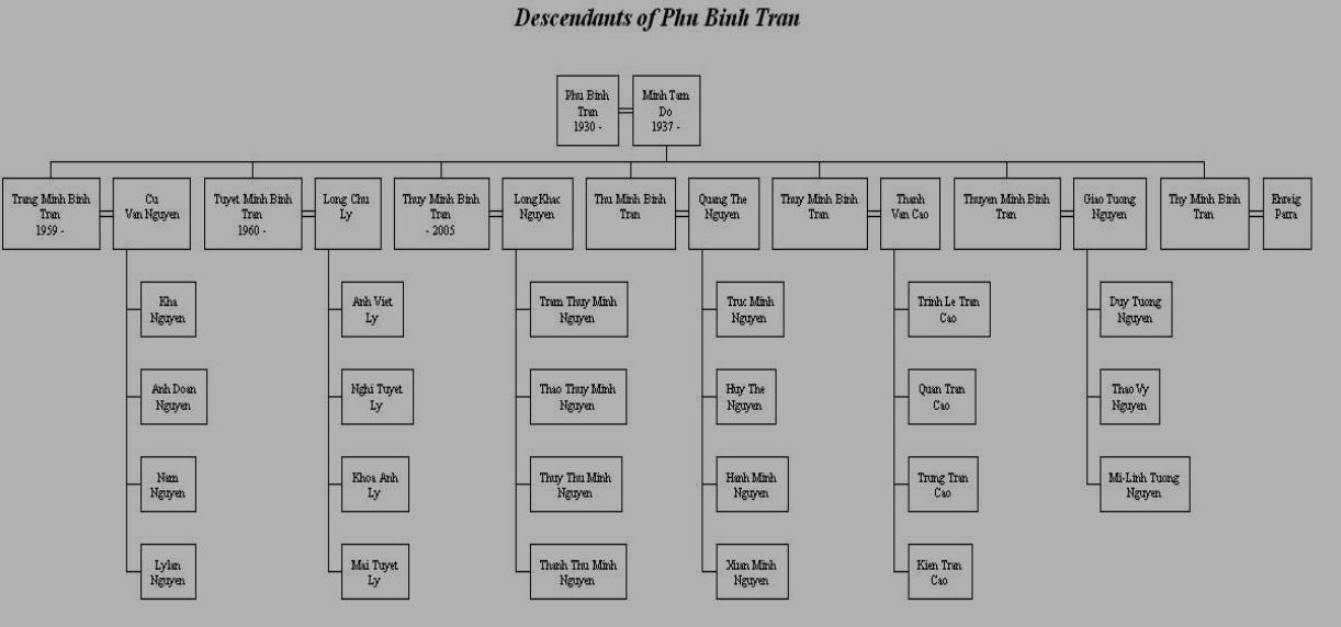- Mrs. Trần Bình Minh Thuý. She is married to Mr. Cao Văn Thành. They have 4 children: Cao Trần Lê Trinh, Cao Trần Quan, Cao Trần Trung,