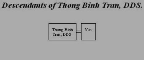 Dr. Trần Bình Thống, DDS., a former South Vietnamse Special Forces Lieutnenant Commander and Denstist. Since 1975, he has been in his own dental practice in France. He is married to Mrs.Vân Xxxxxxxx, a Pharmacist and former Professor at the SaìGòn Univeristy of Pharmacy. They don't have any children. |